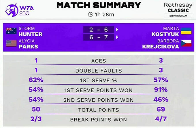 Rothesay Classic Dubs Champions! 👏 🏆@BKrejcikova and @marta_kostyuk defeat Parks and Hunter 6-2, 7-6(7) to take home the title at Birmingham! #RothesayClassic pic.twitter.com/q4uGEo57yo