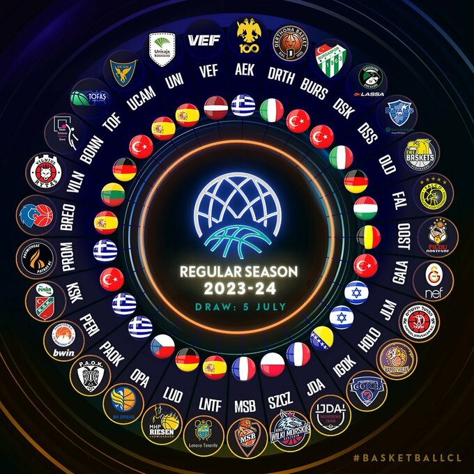 Опубліковано заявки клубів для участі у баскетбольній Лізі чемпіонів сезону-2023/2024.