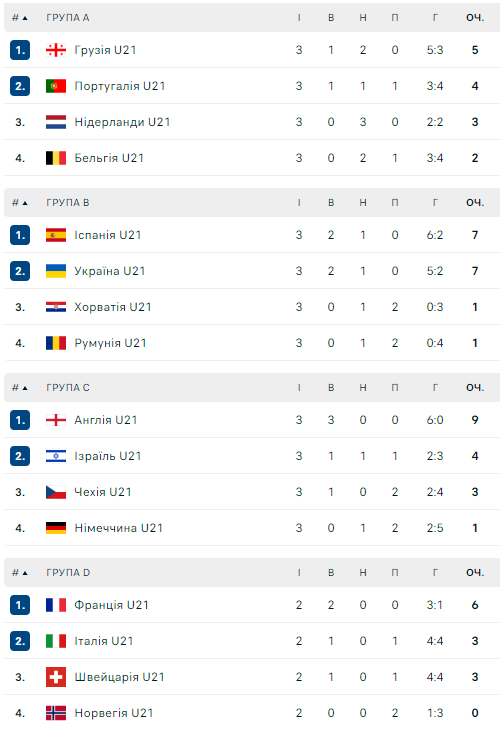 - 19:00. Англія U-21 – Німеччина U-21 – 2:0