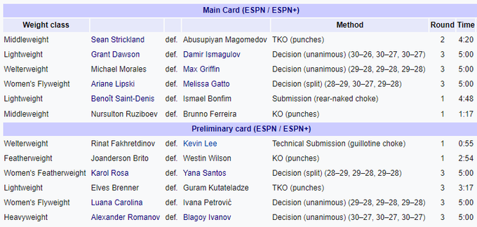 Шон Стрікленд (США, 26–5) – абусуп'ян магомедов (без прапора / Німеччина, 25–4–1) – TKO 2/5