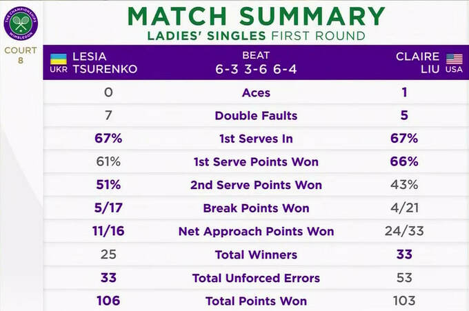 Леся якісно зіграла кінцівку першого сету та добре почала другий. Мала всі шанси зробити швидкий брейк, повести 2:0 і закінчити все до дощу. Лю вже й сама десь не вірила у перемогу. Але все чомусь розвалилося, і довелося грати виснажливий матч. Добре, що вдалося перемогти, та зрозуміло, що до кінця відновитися від чергового пошкодження не вдалося, і у наступному раунді буде вкрай важко, хто б з двох суперниць там не виграв.