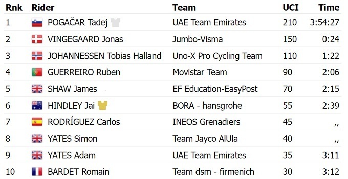 Словенський велогонщик команди «UAE Emirates» Тадей Погачар став переможцем шостого Тур де Франс-2023 з гірським фінішем на Котере. Він зумів відіграти майже півхвилини у Йонаса Вінгегора з «Jumbo Visma», що не завадило данцеві перехопити жовту майку лідера в загальному заліку.