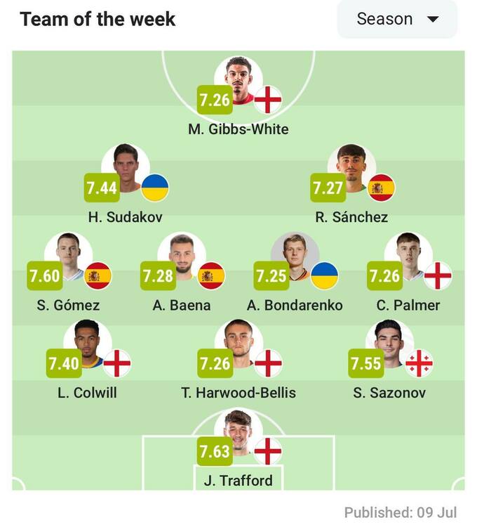 Символічна збірна Євро-2023 U-21 за версією SofaScore: