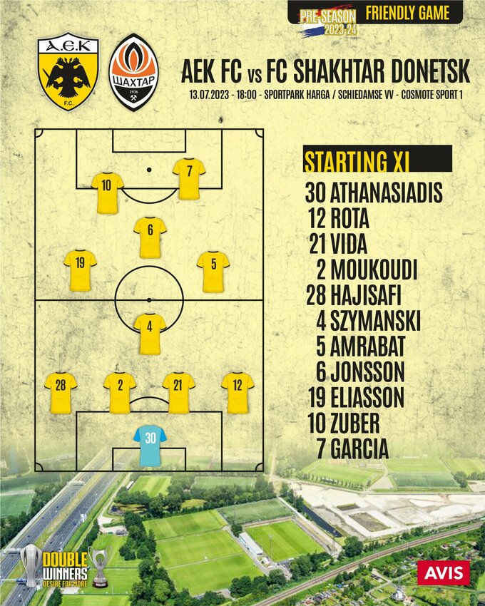 У четвер, 13-го липня, відбудеться товариський матч, у якому змагатимуться донецький «Шахтар» та АЕК Афіни. Матч пройде в Роттердамі (Нідерланди), на полі стадіону «Combinatie Wil Overwinnen», початок о 18:00.
