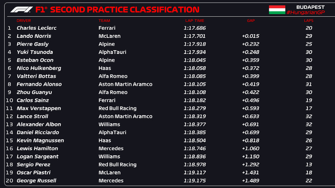 У другій практиці найкращим був Шарль Леклер, який випередив Ландо Норріса.
