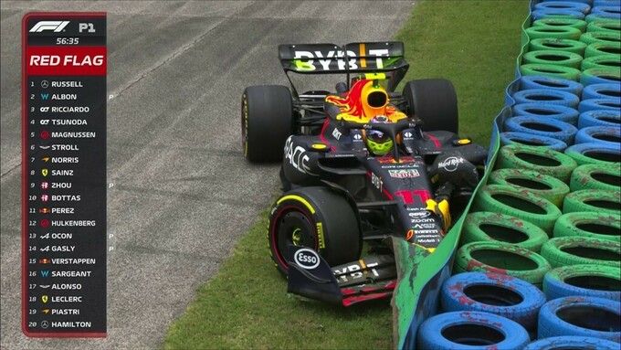 Зазначимо чергову невдачу Серхіо Переса. Пілот Ред Булла заїхав на траву, не впорався з керуванням та вилетів у бар'єри, пошкодивши болід.