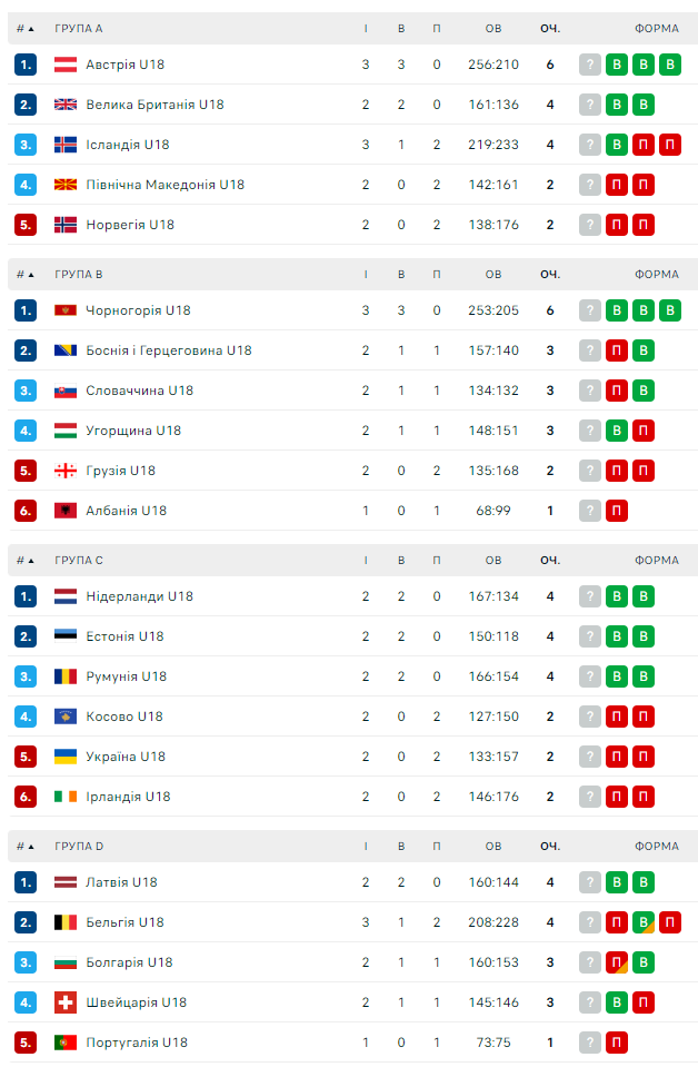 Євробаскет-2023 U-18. Дивізіон B. Турнірні таблиці