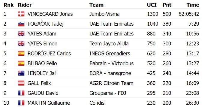 Данський велогонщик команди «Jumbo Visma» Йонас Вінгегор став переможцем Тур де Франс-2023. Для нього це друга поспіль перемога на «Великій петлі». Другим став чемпіон Туру 2020 і 2021 років, словенець Тадей Погачар з «UAE Emirates». Вони займають перші два місця в загальному заліку Туру третій рік поспіль. Топ-3 замкнув партнер Погачара по команді, британець Адам Єйтс.