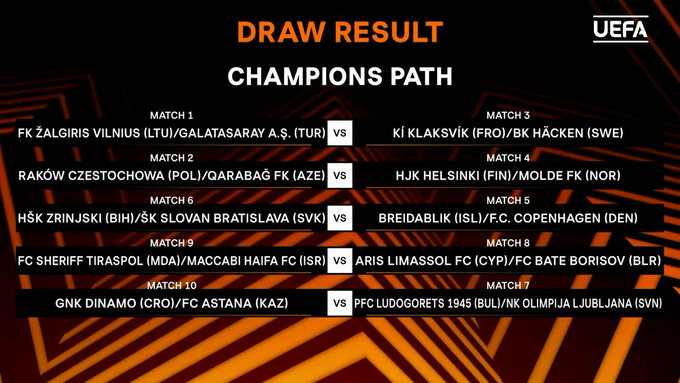 - Жальгіріс (Литва) / Галатасарай (Туреччина) – КІ Клаксвік (Фарери) / Хеккен (Швеція)