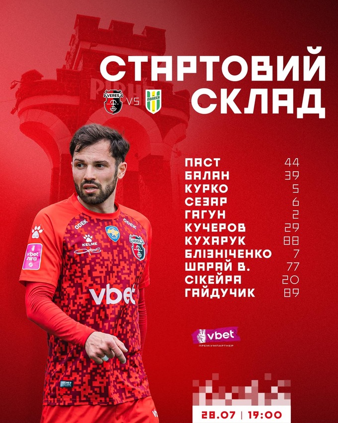 «Верес»: Паст – Гагун, Жуліо Сезар, Курко, Балан – Кухарук (Шестаков, 74), Кучеров – В. Шарай (Дахновський, 74), Яго (С. Шарай,79), Блізніченко – Гайдучик (Марусич, 46).