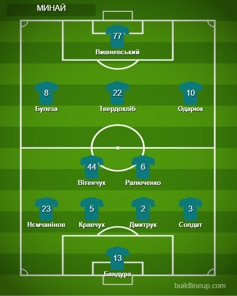 «Минай»: Бандура - Дмитрук (Ольховий, 59), Солдат (Ременяк, 67), Нємчанінов, Кравчук, Булеза (Рогозинський, 46) - Ралюченко (Панасенко, 46), Вітенчук - Одарюк (Гечев, 72), Твердохліб - Вишневський.