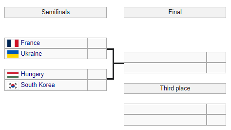 В іншому півфіналі зустрінуться Угорщина та Південна Корея.