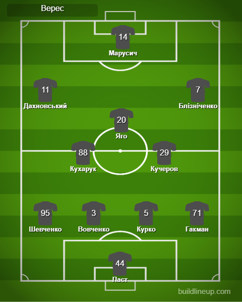 «Верес»: Паст, Вовченко, Курко, Є. Шевченко (Гагун, 84) Гакман, Кухарук, Блізніченко (Шестаков, 57), Дахновський (Шарай В., 57), Яго (Шарай С., 84), Кучеров, Марусич (Гайдучик, 71).