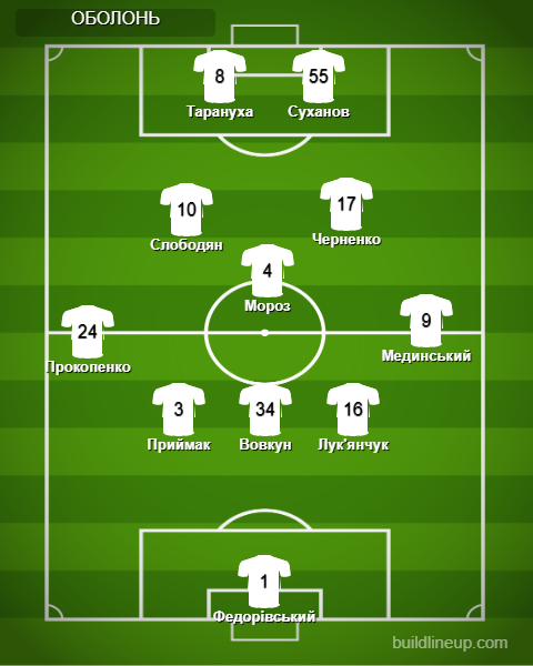 «Оболонь»: Федорівський - Лук'янчук, Приймак, Черненко, Прокопенко, Слободян (Осман, 84), Мединський (Нагієв, 84), Вовкун (Карась, 32), Мороз, Суханов (Краснопір, 65), Тарануха (Груша, 65).