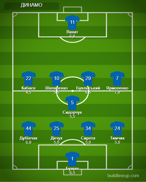 Заміни Динамо: Волошин - 5,5, Бражко - 5,5, Шепелєв - 5,5, Вівчаренко - б/о, Діалло - б/о.