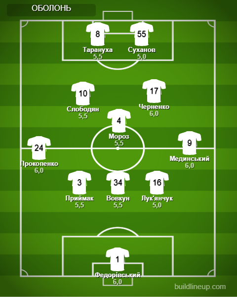 Заміни Оболоні: Карась - 6,0, Краснопір - 5,5, Груша - 3,0, Осман - б/о, Нагієв - б/о.