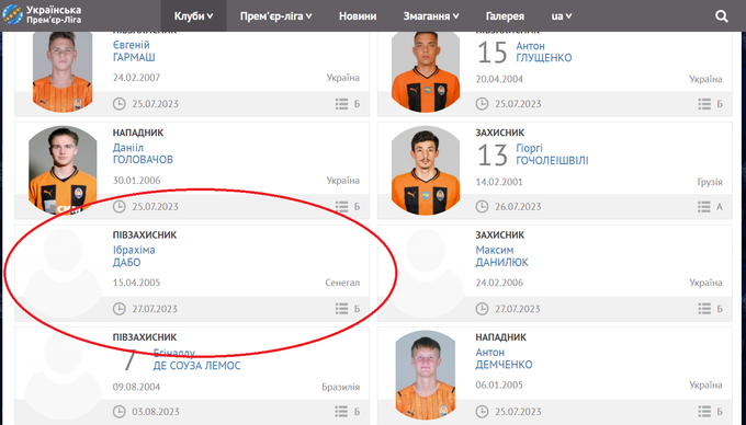 Дабо заявлений «гірниками» за списком Б, який дозволяє реєструвати молодих футболістів, народжених у 2002 році чи пізніше.