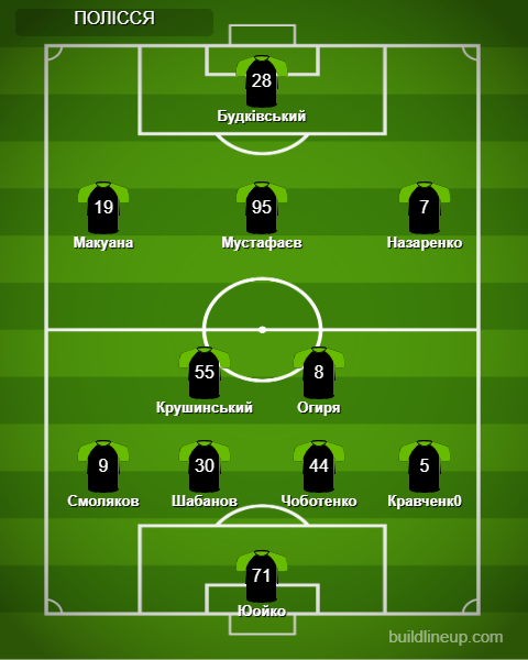 «Полісся»: Бойко – Шабанов, Чоботенко, Смоляков, Кравченко, Огіря, Крушинський (Янаков, 70), Мустафаєв (Танковський, 46), Макуана, Назаренко (Козак, 63), Будківський.