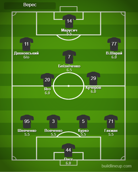 «Верес»: Паст, Вовченко, Курко, Блізніченко (Гайдучик, 73), Дахновський (Балан, 11), Марусич (Гагун, 81), Яго (Кучеренко, 73), Кучеров, Гакман (Шестаков, 73), В.Шарай, Шевченко.