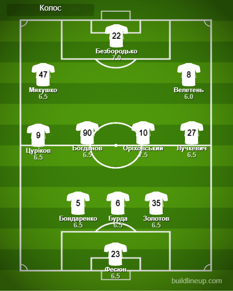 «Колос»: Фесюн, Цуріков, Бондаренко, Бурда, Золотов, Лучкевич, Богданов (Болбат, 81), Оріховський, Мякушко (Ільїн, 68), Безбородько (Салабай, 81), Велетень (Демченко, 52).