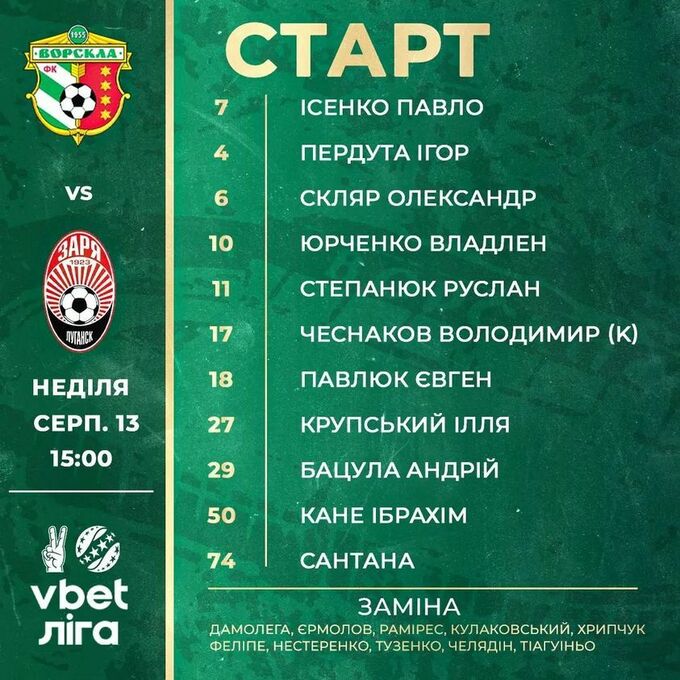 У неділю, 13 серпня, відбудеться поєдинок 3-го туру Української Прем'єр-ліги, в якому змагатимуться полтавська «Ворскла» та луганська «Зоря». Матч пройде у Полтаві, на полі стадіону «Ворскла» ім. О. Бутовського, початок о 15:00.