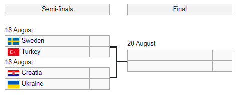 В іншому півфіналі пре-кваліфікації збірна Туреччини зіграє із командою Швеції. В основний раунд олімпійської кваліфікації вийде лише переможець турніру у Стамбулі.