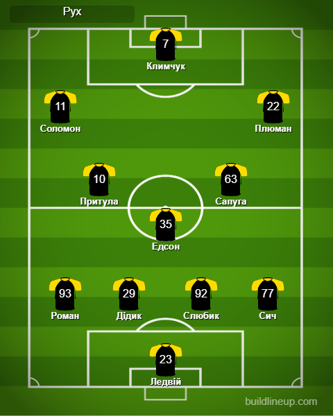 «Рух»: Ледвій, Сич, Слюбик, Дідик, Роман, Плюман (Квасниця, 62), Сапуга, Едсон (Слюсар, 75), Притула (Таллес, 46), Соломон-Отабор (Руніч, 79), Климчук.