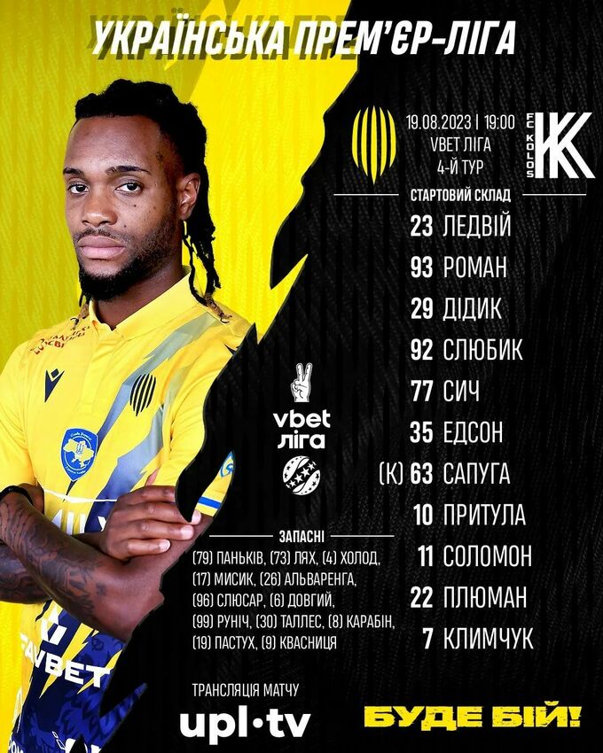 Запасні: Паньків, Лях, Карабін, Мисик, Альваренга, Довгий, Пастух, Холод.