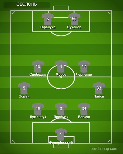 «Оболонь»: Федорівський - Нагієв (Мединський, 61), Вовкун (Фатєєв, 76), Приймак, Лук'янчук, Осман (Прокопенко, 46) - Черненко, Мороз, Слободян (Груша, 76) - Суханов (Краснопір, 46), Тарануха.