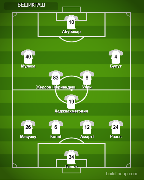 «Бешикташ»: Гюнок - Розьє, Амарті, Коллі, Масуаку (Зайнутдінов, 46) - Учан (Окслейд-Чемберлен, 86), Хаджиахметович, Жедсон Фернандеш - Булут (Мераш, 64), Абубакар (Тосун, 89), Мулека (Рашиця, 64).