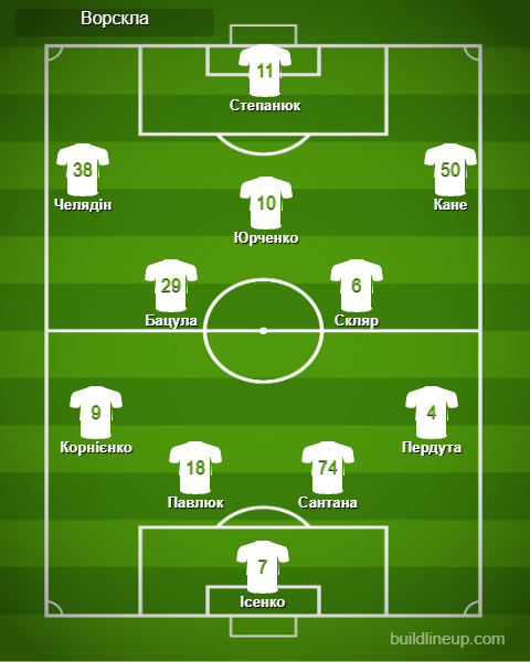 «Ворскла»: Ісенко, Пердута, Скляр, Корнієнко (Нестеренко, 66), Юрченко (Тіагуіньо, 66), Степанюк, Павлюк, Бацула, Челядін (Кулаковський, 89), Кане, Сантана (Хрипчук, 83).
