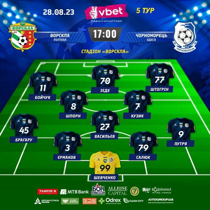 Полтавська «Ворскла» та одеський «Чорноморець» 27 серпня зустрінуться у матчі п'ятого туру Української Прем'єр-ліги. Поєдинок відбудеться у Полтаві, на стадіоні «Ворскла» ім. О. Бутовського. Початок призначено на 17:00.