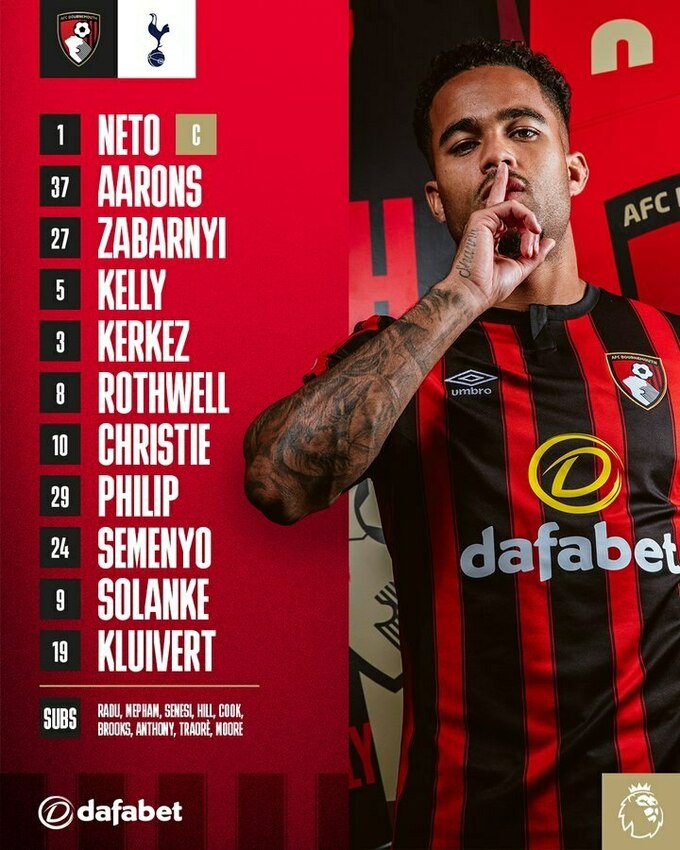 «Борнмут»: Нето, Керкез, Келлі, Забарний, Ааронс, Ротуелл, Крісті, Клюйверт, Семеньо, Біллінг, Соланке