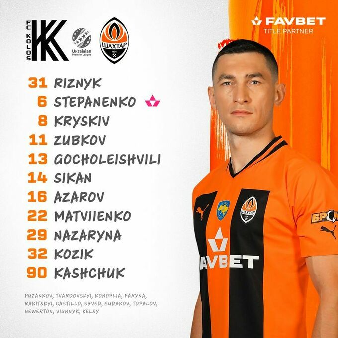 «Шахтар»: Різник – Азарові, Матвієнко, Козік (Ракіцький, 65), Гочолеішвілі – Степаненко (Кастілло, 74) – Кащук (Конопля, 64), Криськів, Назарина, Зубков (В’юнник, 65) – Сікан (Судаков, 65).