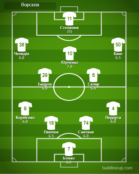 «Ворскла» (заміни): Тіагуіньо - 6.5, Хрипчук - б/о, Кулаковський - б/о.