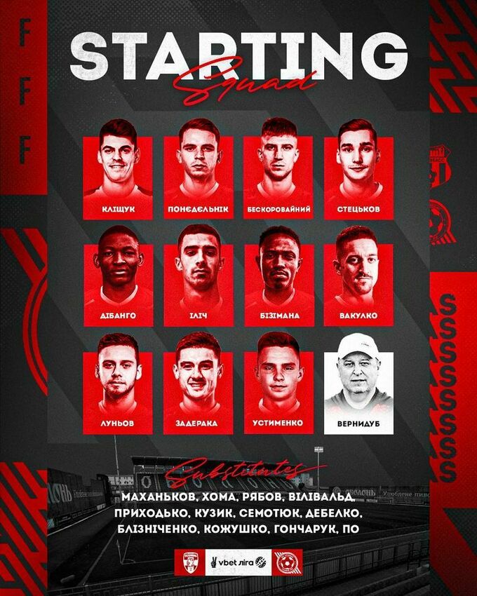 Запасні: Маханьков, Хома, Рябов, Вілівальд, Дебелко, Блізніченко.