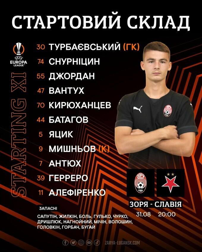 У четвер, 31-го серпня, відбудеться матч-відповідь фіналу плей-оф кваліфікації Ліги Європи УЄФА, у якому змагатимуться луганська «Зоря» і празька «Славія». Матч відбудеться в Любліні (Польща), на полі стадіону «Арена Люблін», початок о 20:00.