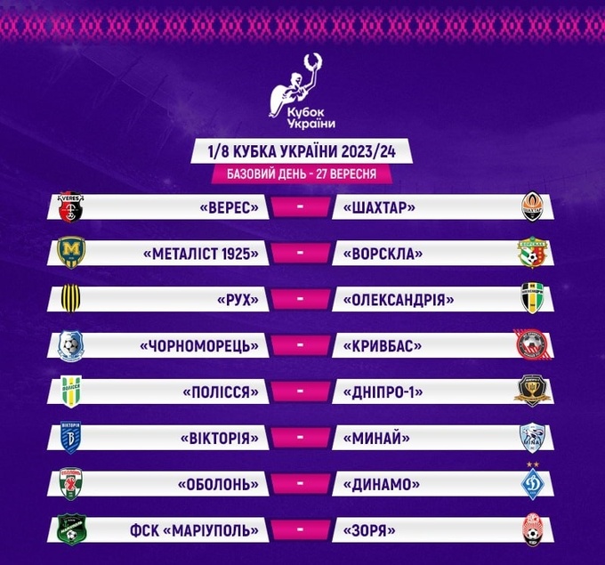 Пари 1/8 фіналу Кубка України-2023/2024