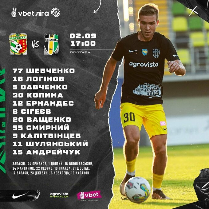 У суботу, 2-го вересня, відбудеться поєдинок 6-го туру Української Прем'єр-ліги, у якому змагатимуться полтавська «Ворскла» й «Олександрія». Матч відбудеться в Полтаві, на полі стадіону «Ворскла» ім. О. Бутовського, початок о 17:00.