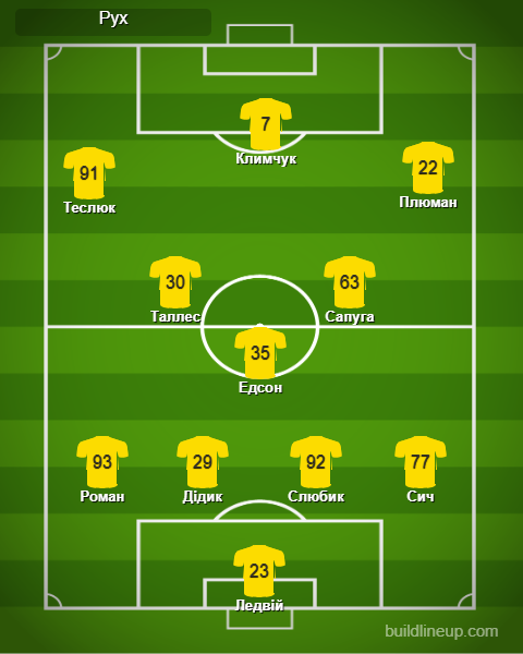«Рух»: Ледвій - Сич, Слюбик, Дідик, Роман - Едсон (Руніч, 80), Сапуга - Теслюк (Квасниця, 57), Плюман (Соломон, 57), Таллес (Пастух, 68) - Климчук.