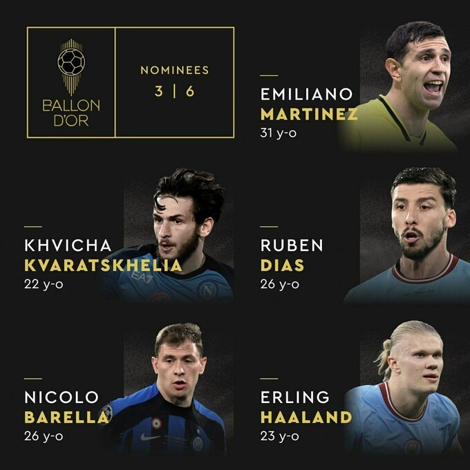 Ризикну зпрогнозвати першу п'ятірку: 1.Мессі; 2. Мбаппе; 3. Де Брюйне; 4. Холанд; 5. Сака.