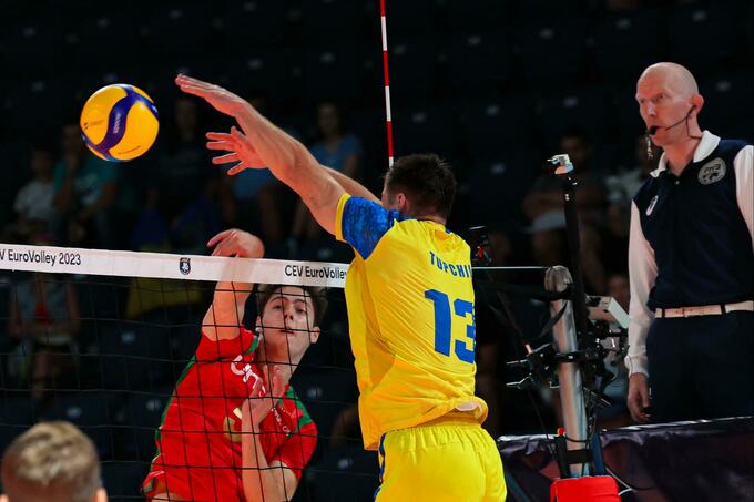 Українці дивом врятували м'яч після подачі португальців. Наші перевели м'яч на половину майданчика опонентів, а ті помилилися в атаці. Сітка. 13:15!