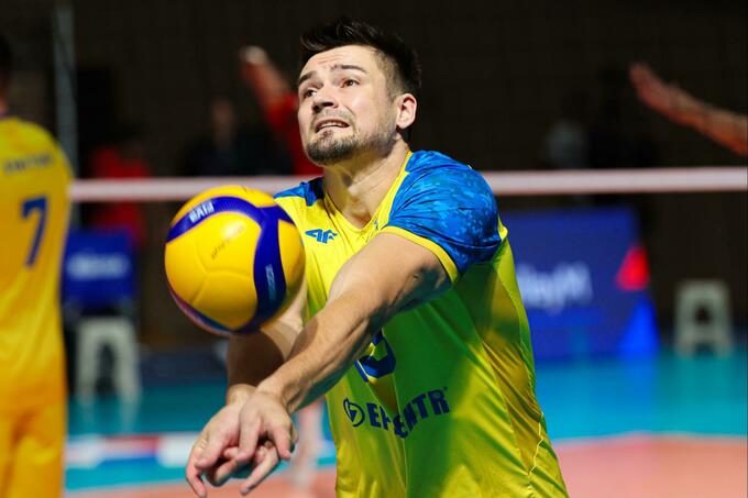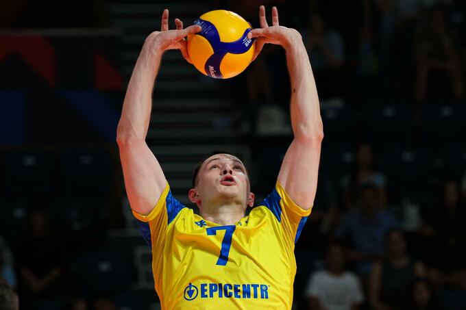 Плотницький помилився, коли правою рукою намагався перекинути м'яч через блок. 16:18.