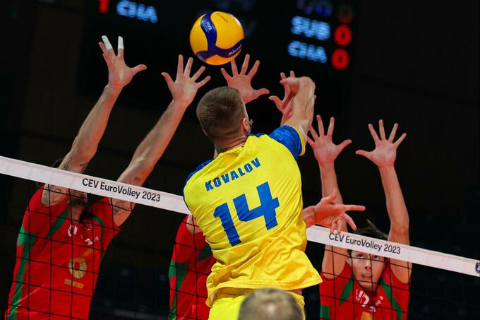 Ковальов намагався перекинути подвійний блок. Але португальці були готові до цього. Синфроніо змахнув м'яч у нашу половину майданчика. 15:20.