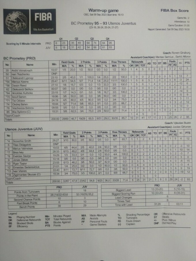 «Прометей»: Кін (24), Сидоров (17), Балвін (12), Одіасе (11), Санон (9), Кульбока (6), Рід (6), Липовий (7), Войналович (3).