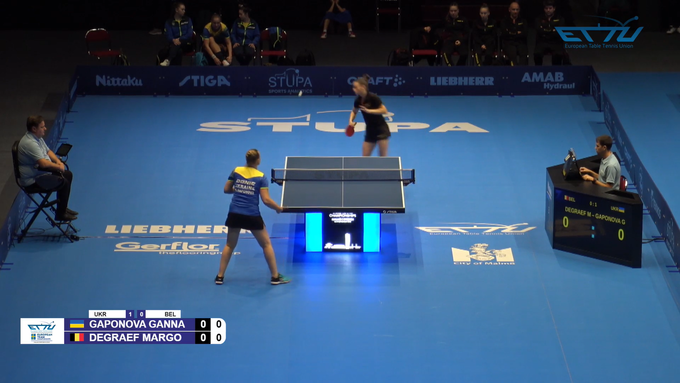 - Ганна Гапонова – Марго Деграф – 3:1 (11:5, 11:7, 11:13, 11:3)