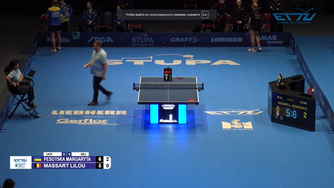 - Маргарита Песоцька – Лілу Масарт – 3:0 (11:3, 11:5, 11:6)