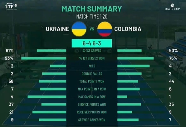 14 вересня стартував матч Першої Світової групи Кубка Девіса між збірними України та Колумбії.