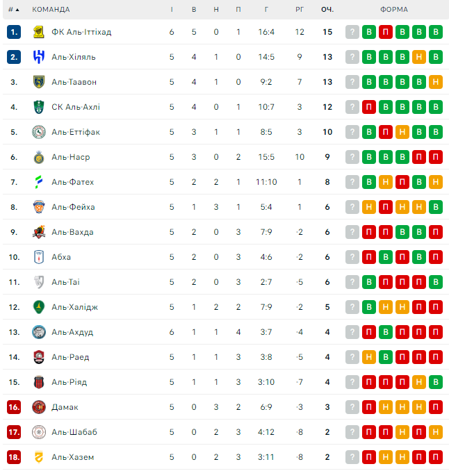 «Аль-Іттіхад» вийшов у лідери чемпіонату, набравши 15 очок з 18 можливих.