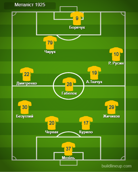 «Металіст 1925»: Мозіль, Жичиков, Курило, Червак, Безуглий, Габелок, Р. Русин (Арі, 69), А. Ткачук (Фарина, 69), Чирук (Ігор, 79), Дмитренко, Борячук (Вачіберадзе, 59).